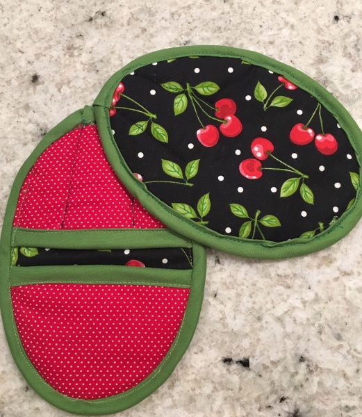 That bread looks like a whole lot of deliciousnes! The pot holders are adorable too, I love the pattern you picked.