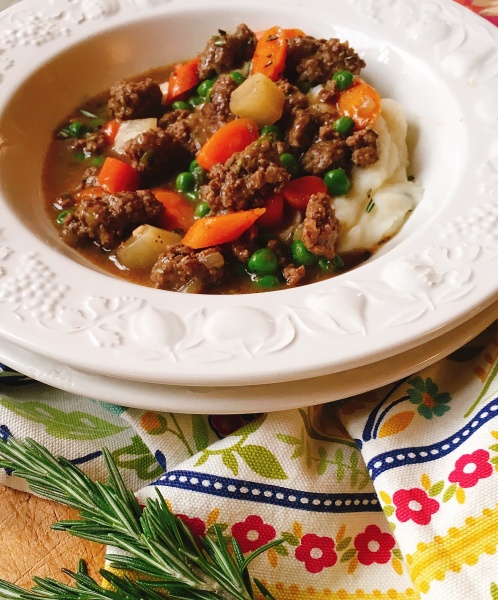 Cottage Pie is similar to Shepherds Pie, except Cottage Pie uses beef vs. the traditional lamb. I previously shared a recipe called Upside Down Shepherds Pie, before I understood this distinction. Hopefully my faithful readers will cut me some slack on that one. In my defense, I used the same title as the source recipe for the Upside Down Shepherds Pie. That proves others are taking artistic license with the term Shepherds Pie as well!